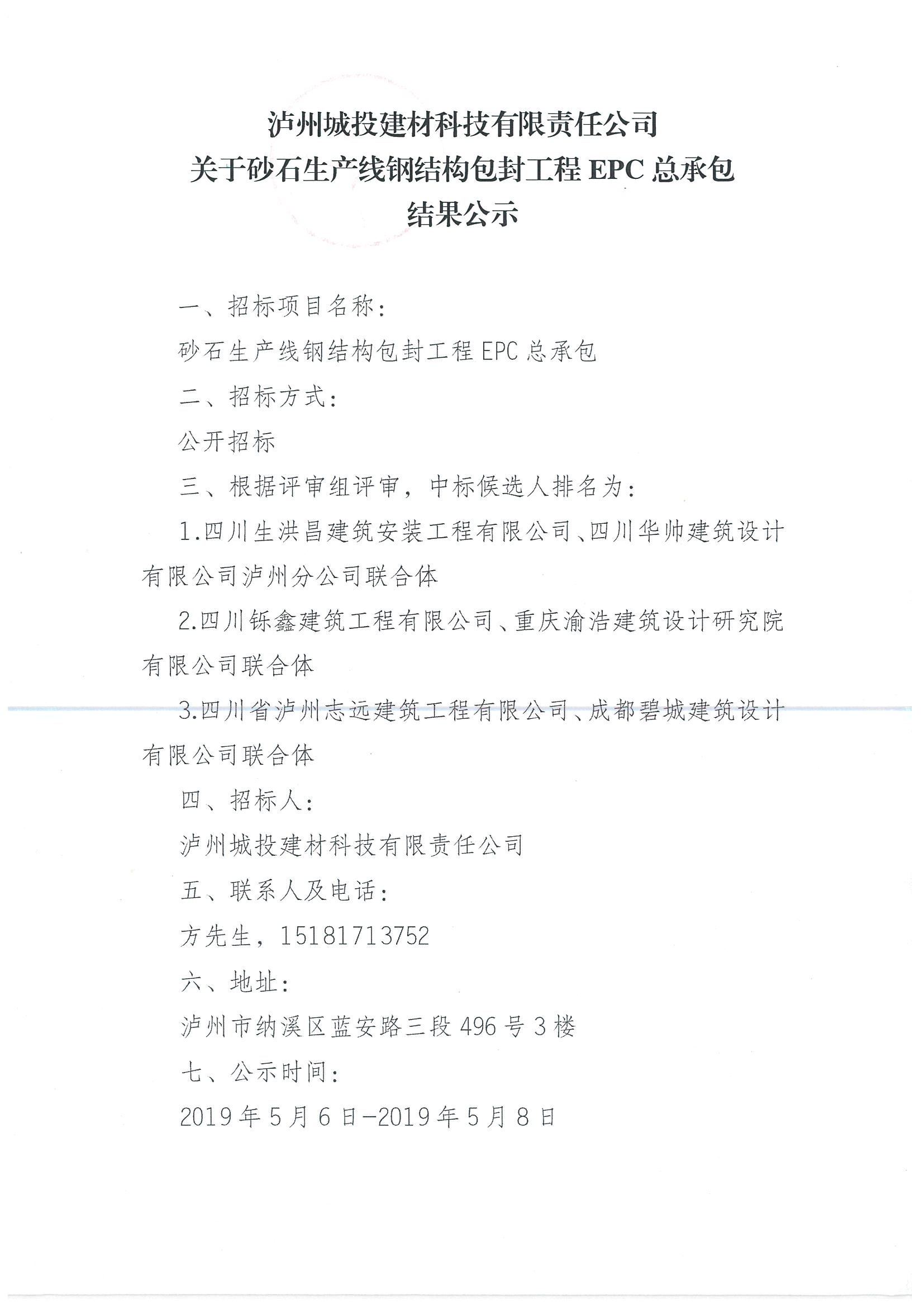 砂石生產(chǎn)線鋼結(jié)構(gòu)包封工程EPC總承包結(jié)果公示